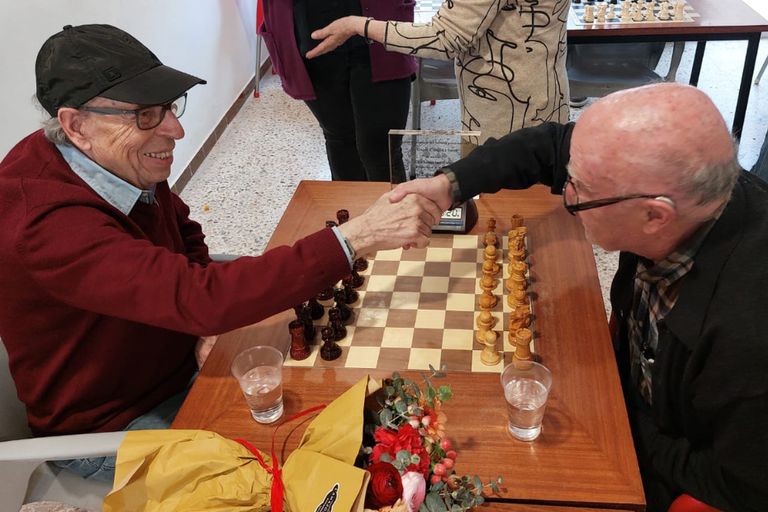 L’emotiva retrobada es va convertir en una partida plena de complicitat i records. Només veure’s, van reprendre el joc amb la mateixa passió de quan eren joves, immersos de nou en l’univers de les 64 caselles del tauler.